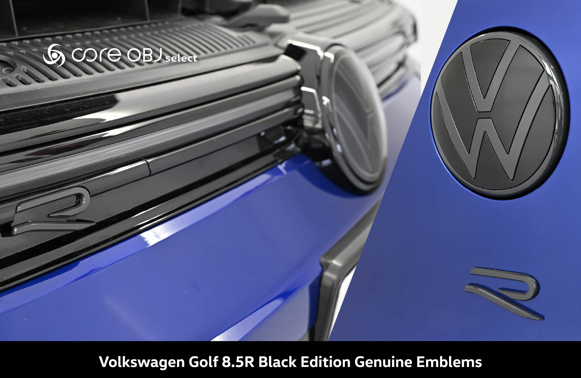 core OBJ select Volkswagen Golf 8.5R Black Edition Genuine Emblemsは、Golf8.5R Black Editionに装着してる純正パーツです。車両に精悍で引き締まった印象を新たに与えます。