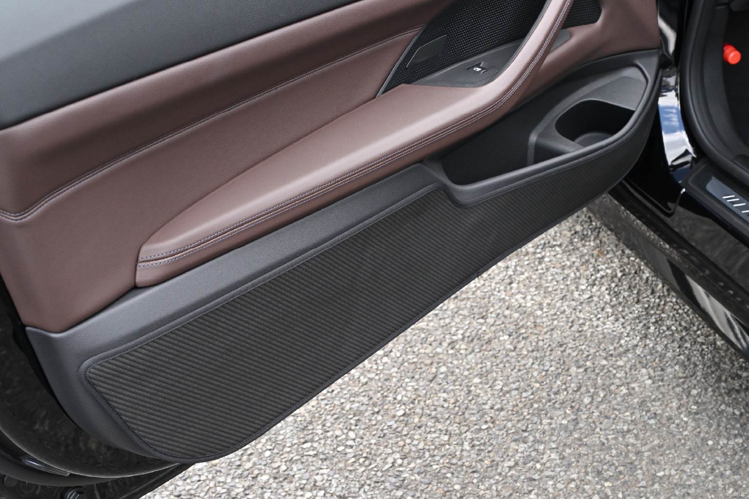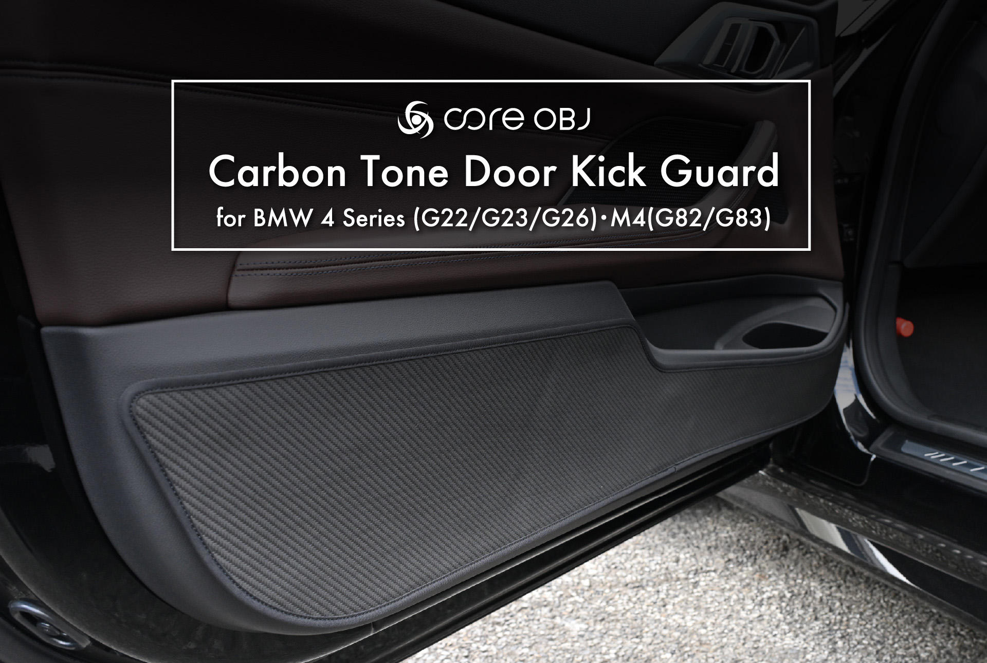 core OBJ Carbon Tone Door Kick Guard for BMW 4 Series (G22/G23/G26)・M4(G82/G83)は、乗降時に汚れやキズがつきやすい車内のフロントドア内張りをスタイリッシュに保護するドアパネルカバーです。