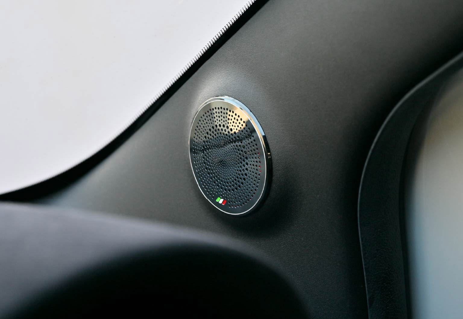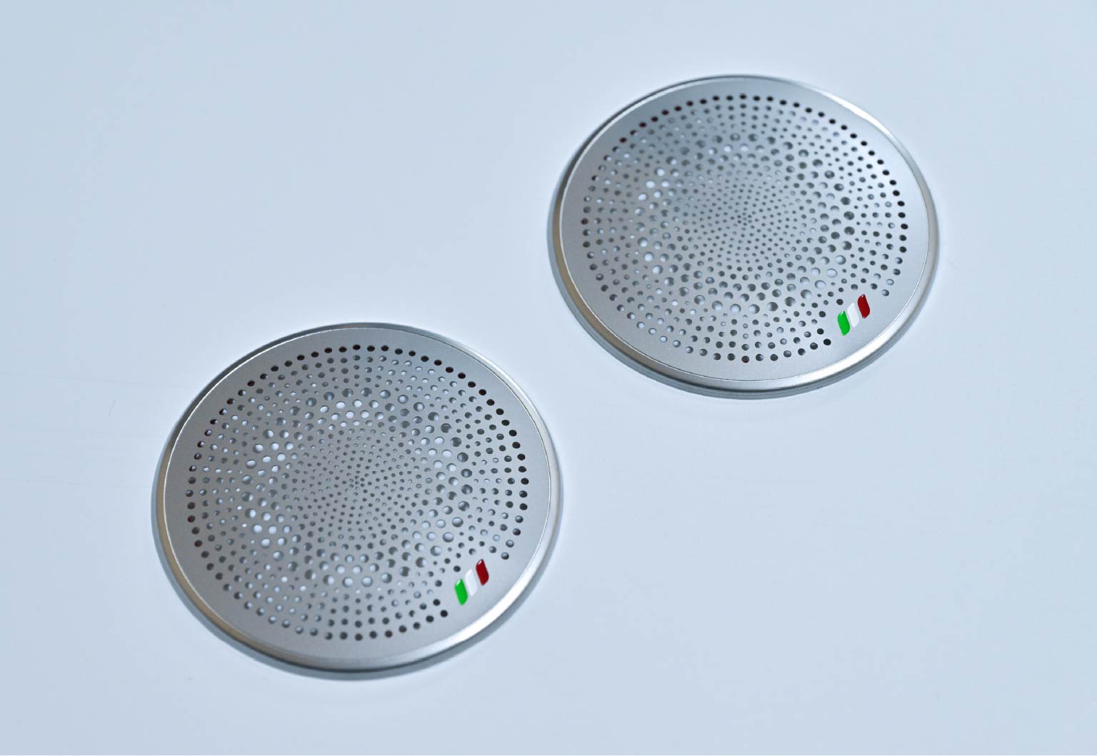 ステンレスの輝きで高級感を高め、防錆、耐熱、耐食性に優れます。車両の外観を損なうことなく、エレガントなスピーカー穴のデザインによって、音質にも影響を与えません。