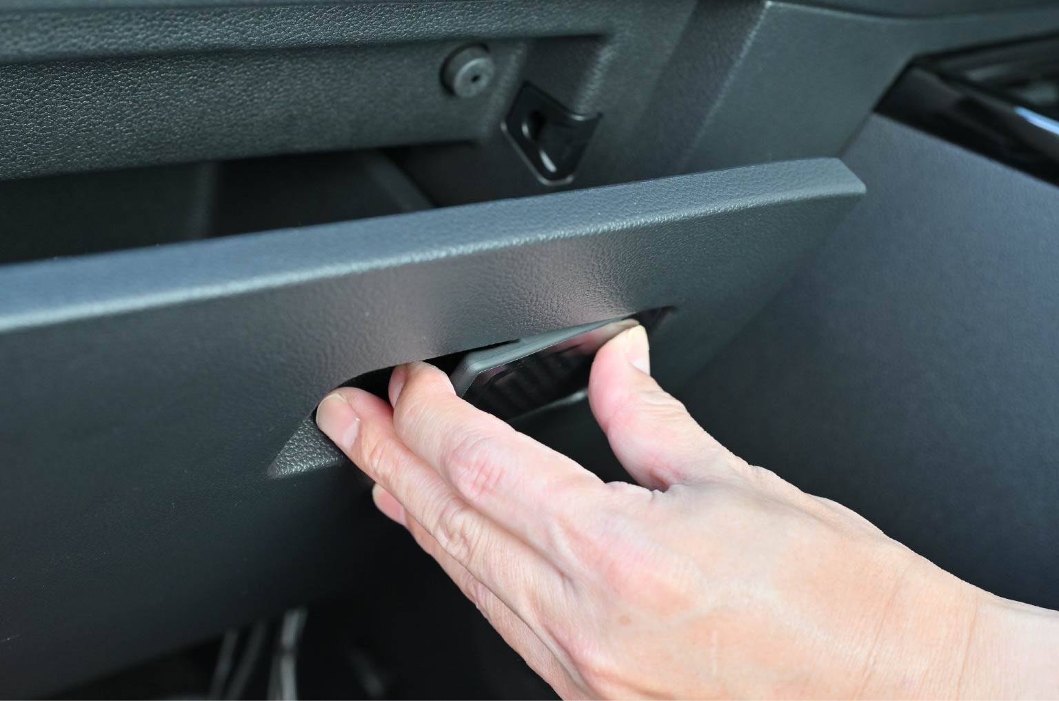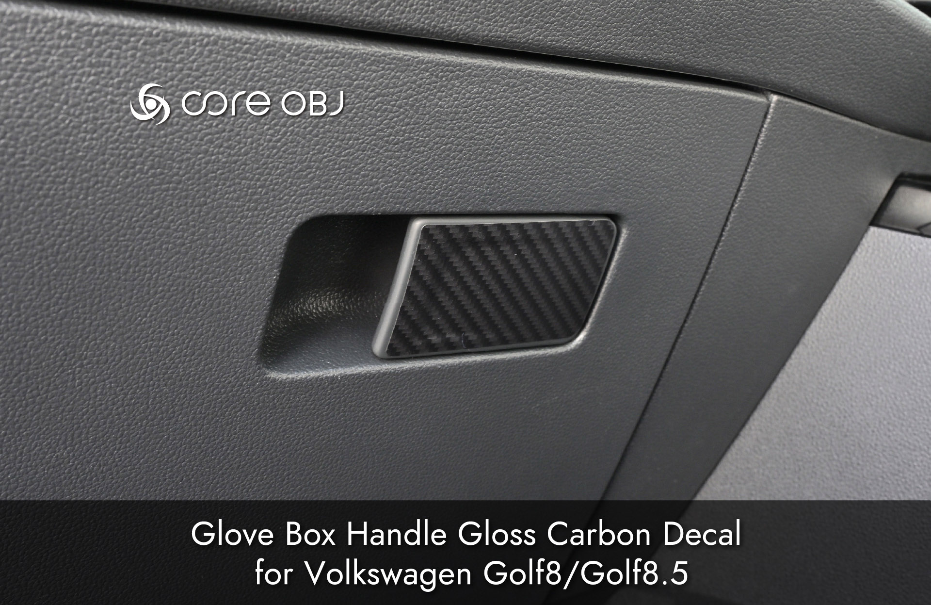 core OBJ Glove Box Handle Gloss Carbon Decal for Volkswagen Golf8/Golf8.5は、ドレスアップと保護効果を実現するグローブボックスハンドル用のグロスカーボン調デカールです。