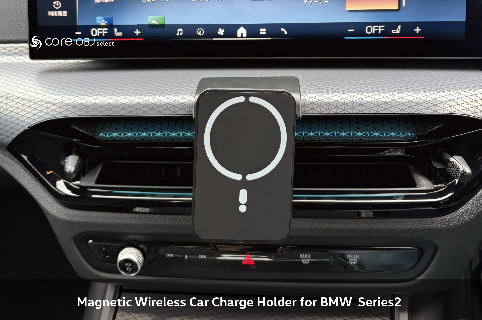 core OBJ select Magnetic Wireless Car Charge Holder for BMWは、magsafe対応iPhone 及び magsafe 付き iPhone ケース用のワイヤレス充電器付スマートフォンホルダーです。