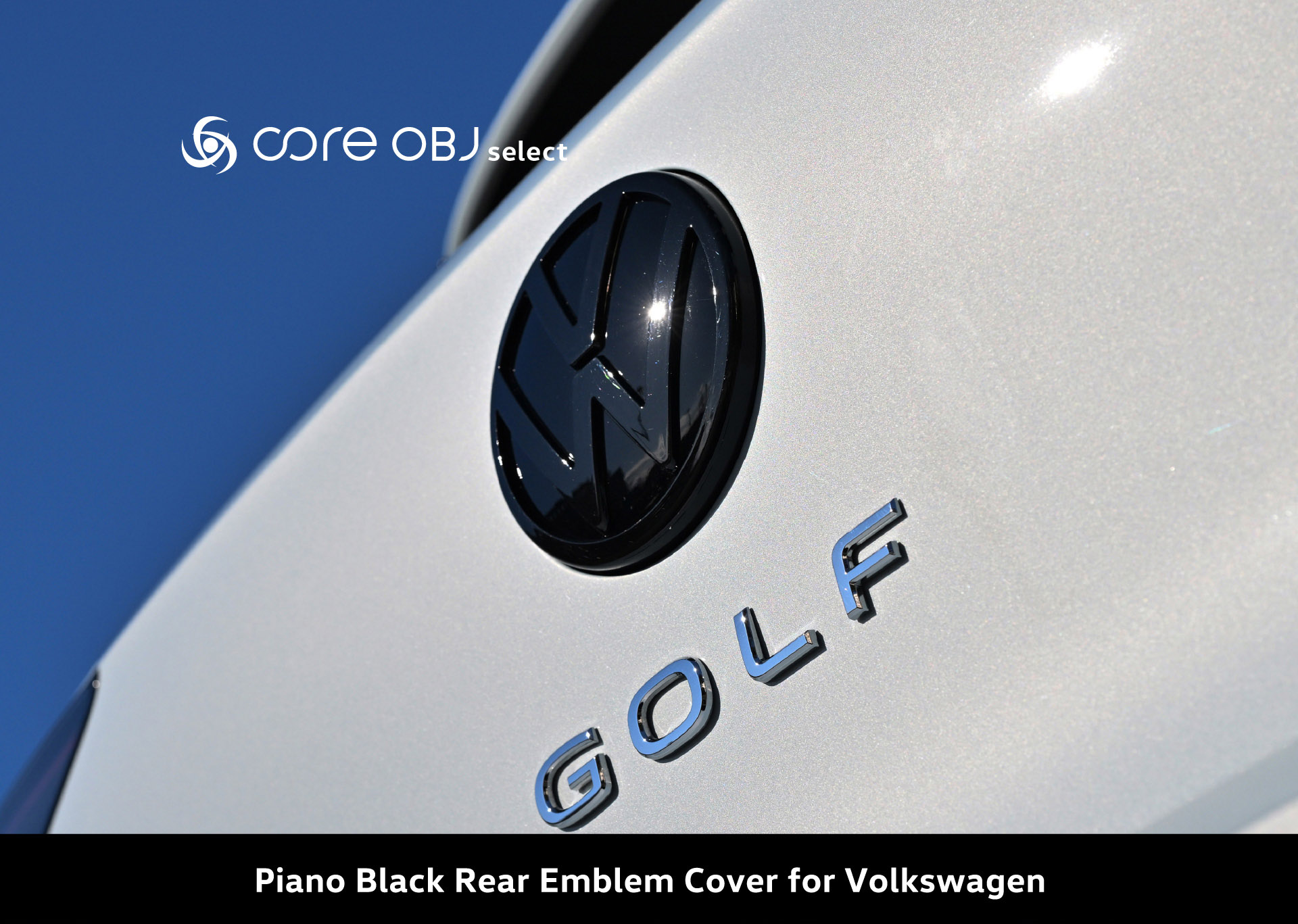 core OBJ select Piano Black Rear Emblem Cover for Volkswagenは、VWリアエンブレムのクローム部をブラックアウトすることが出来るエンブレムカバーです。