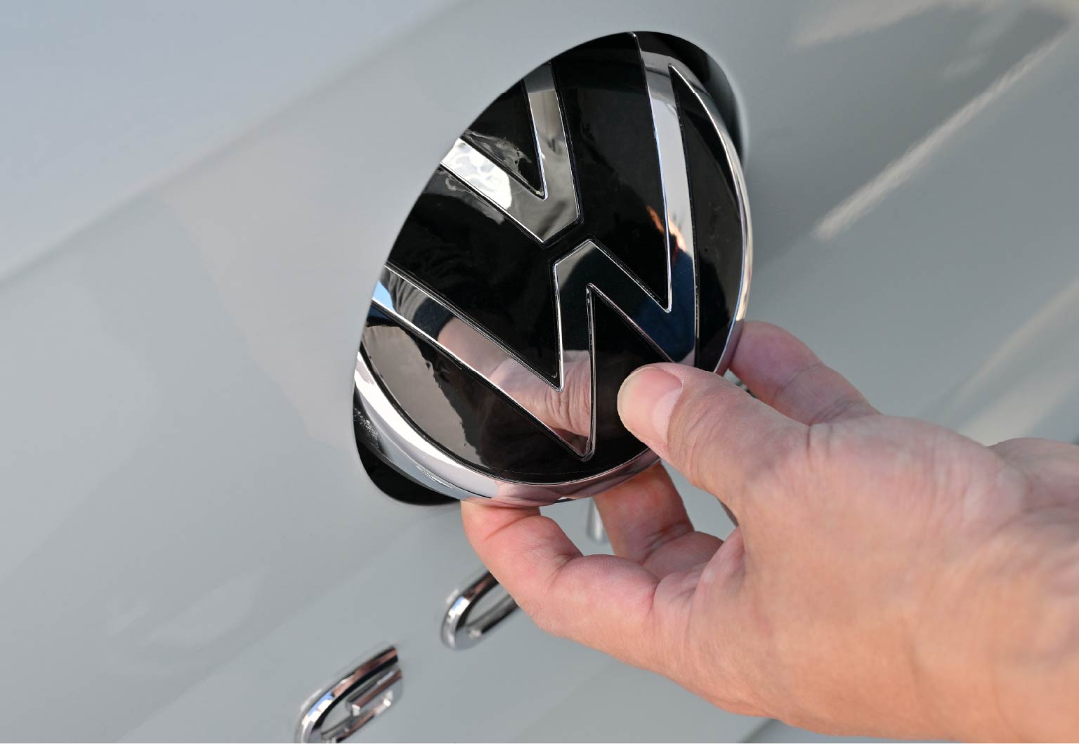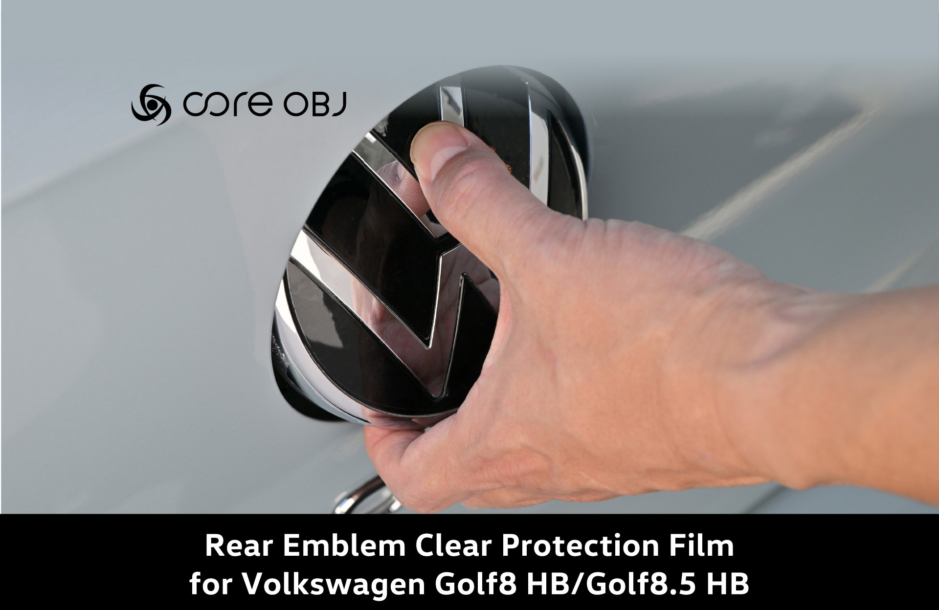 core OBJ Rear Emblem Clear Protection Film for Volkswagen Golf8 HB/Golf8.5HBは、リアゲートを開ける際に爪等でキズが付きやすいVWリアエンブレムのグロスブラック部分を保護をするプロテクションフィルムです。専用の形状で、リアエンブレムの黒い窪みの面に貼るタイプとなります。