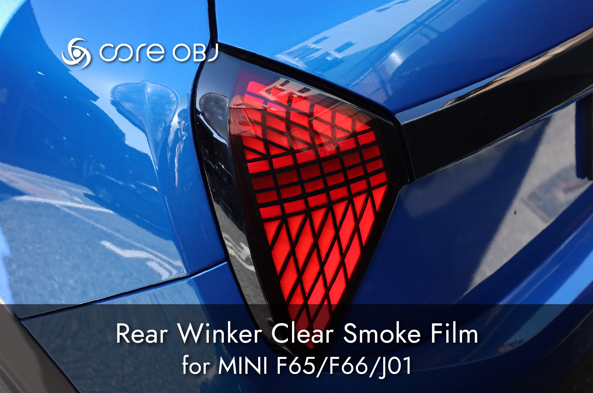 core OBJ Rear Winker Clear Smoke Film for MINI F65/F66/J01は、テールランプのウィンカー部に貼り付けるだけでスモークレンズ調に変更でき、リアビューに引き締まった印象を与えます。高い透過性を誇るので、ウインカー点灯時も視認性に優れています。
