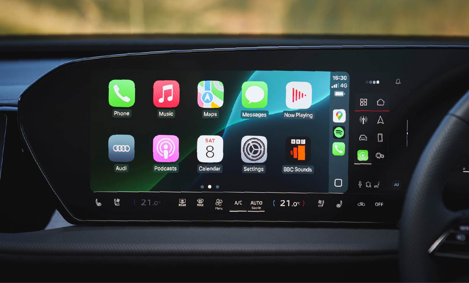 さらに、HDMIとワイヤレスCarPlayやAndroid Autoを純正タッチパネルで切り替えて使用することで対応アプリや電話が出来るオールインワン・インターフェースです。
